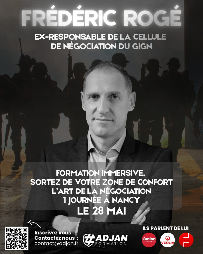 Plongez au cœur d’une expérience unique aux côtés de Frédéric Rogé, ancien responsable de la cellule de négociation du GIGN. À travers une journée immersive, sortez de votre zone de confort et découvrez les techniques utilisées dans les situations les plus critiques pour mieux négocier, convaincre et gérer les échanges à fort enjeu.