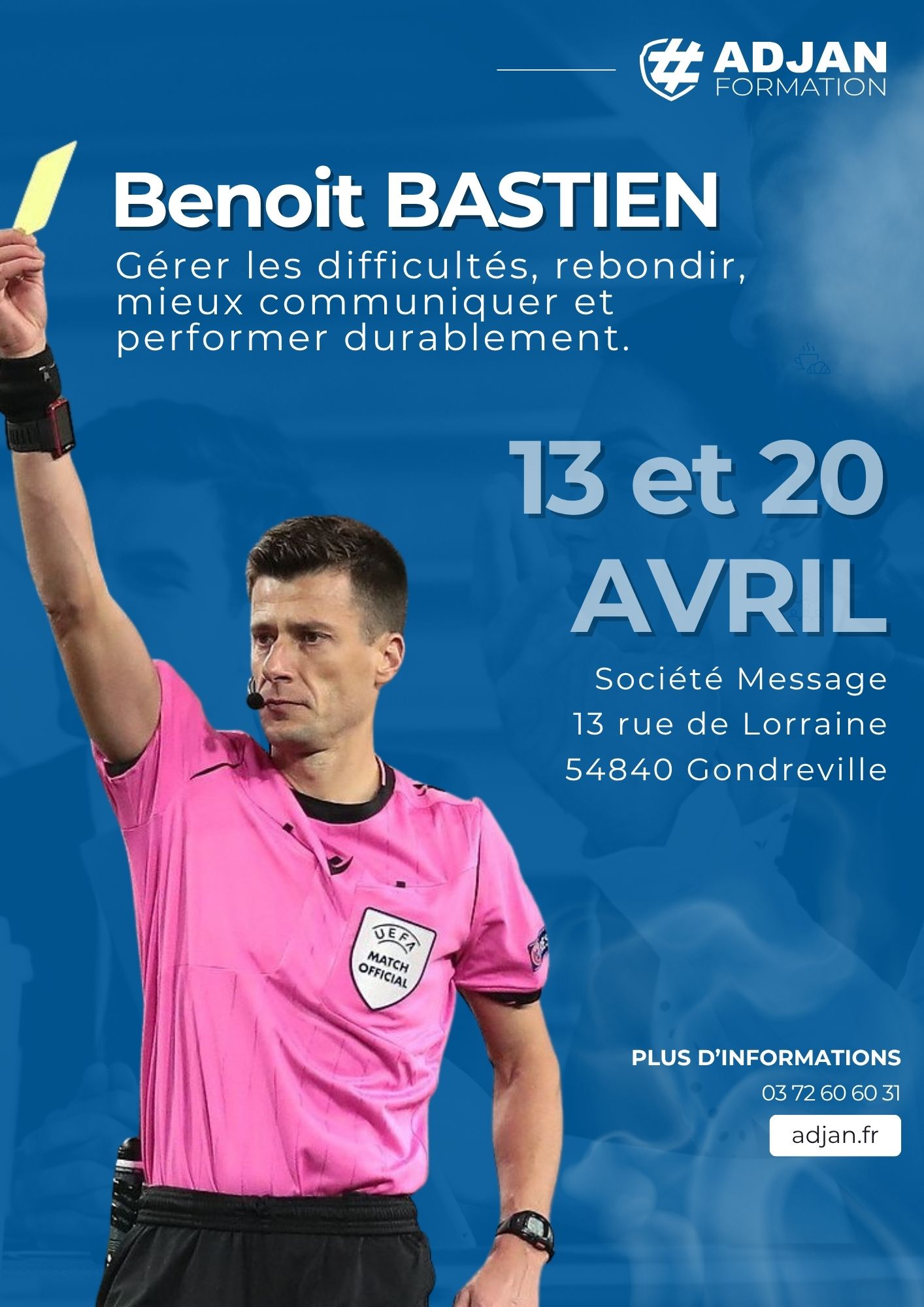 Rejoignez une formation unique animée par Benoît Bastien, arbitre international reconnu, pour apprendre à mieux gérer les situations difficiles, renforcer votre communication et développer une performance durable.
